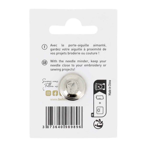 Bohin Needle Minder - magnetic needle keeper. You can attach the minder to your embroidery project or a project bag and keep sewing needles or stitch markers safe while working on it.