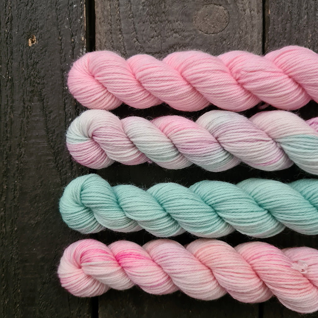 No Surprise Mini Club is exactly what it sounds like. Every month we will release 4 new mini skein colours that are available as a set. You always see the colours before purchasing. No surprises!