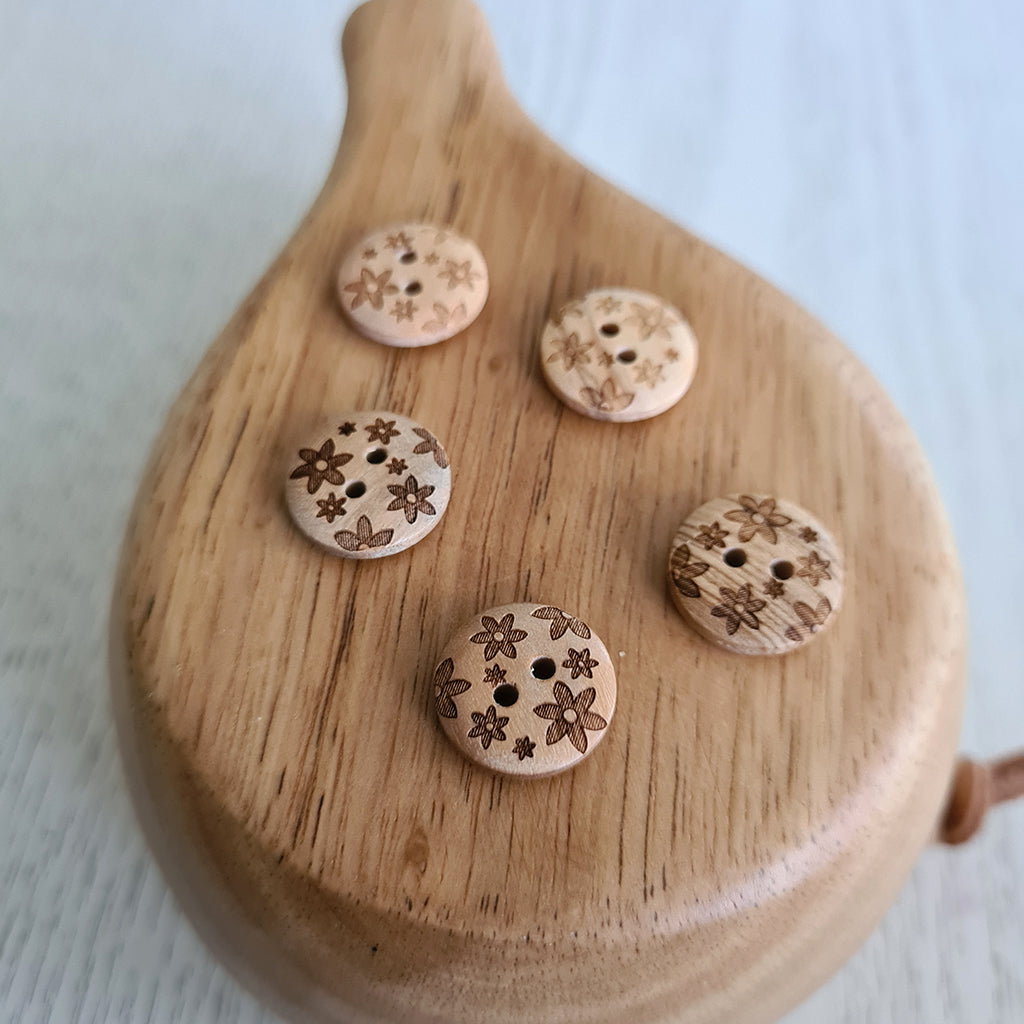 Drops wooden button with a floral pattern.